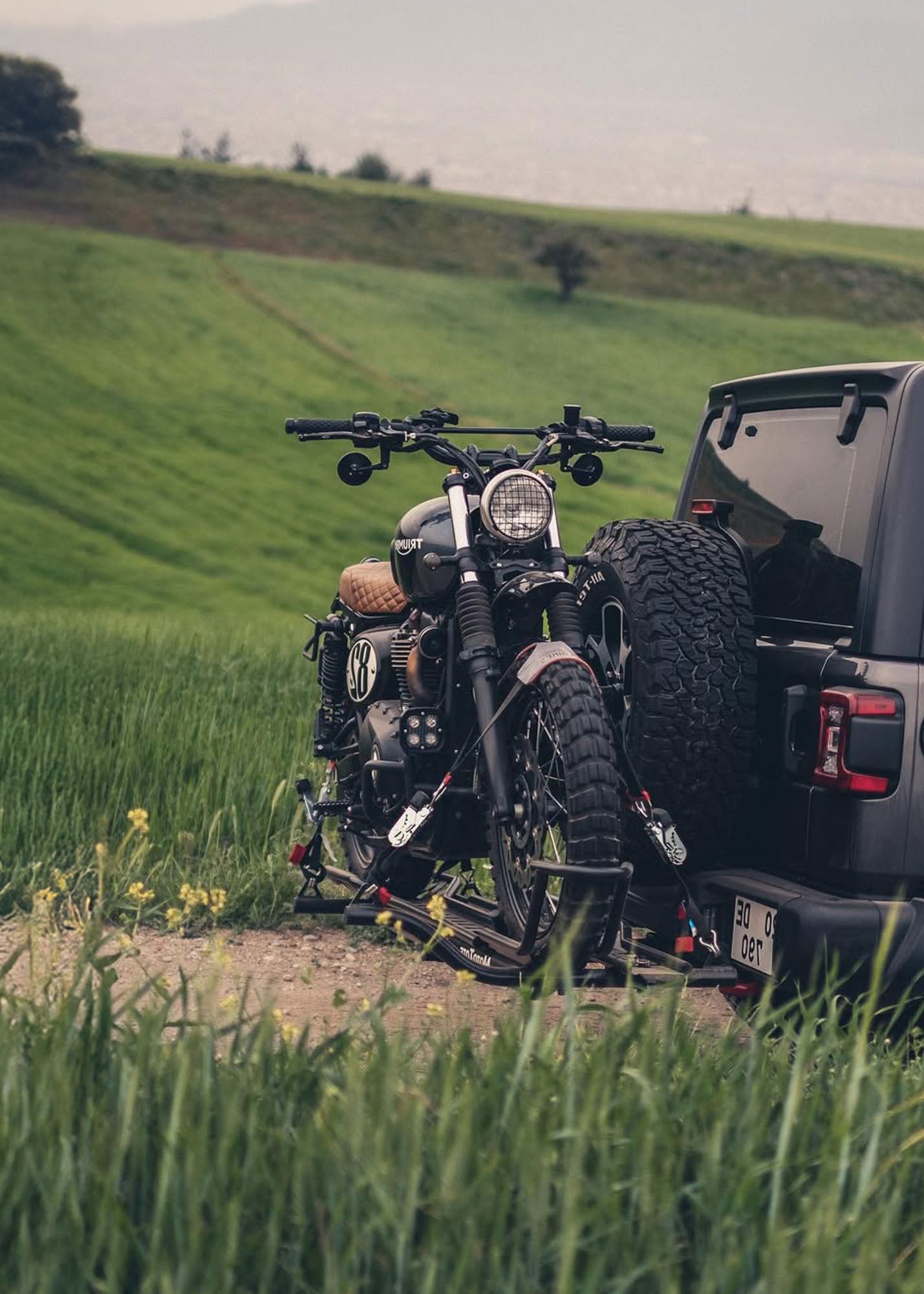 Trusted hitch mount motorcycle carrier for wide-tire motorcycles up to 600 lbs.; sport bikes, scramblers, and dual sports.