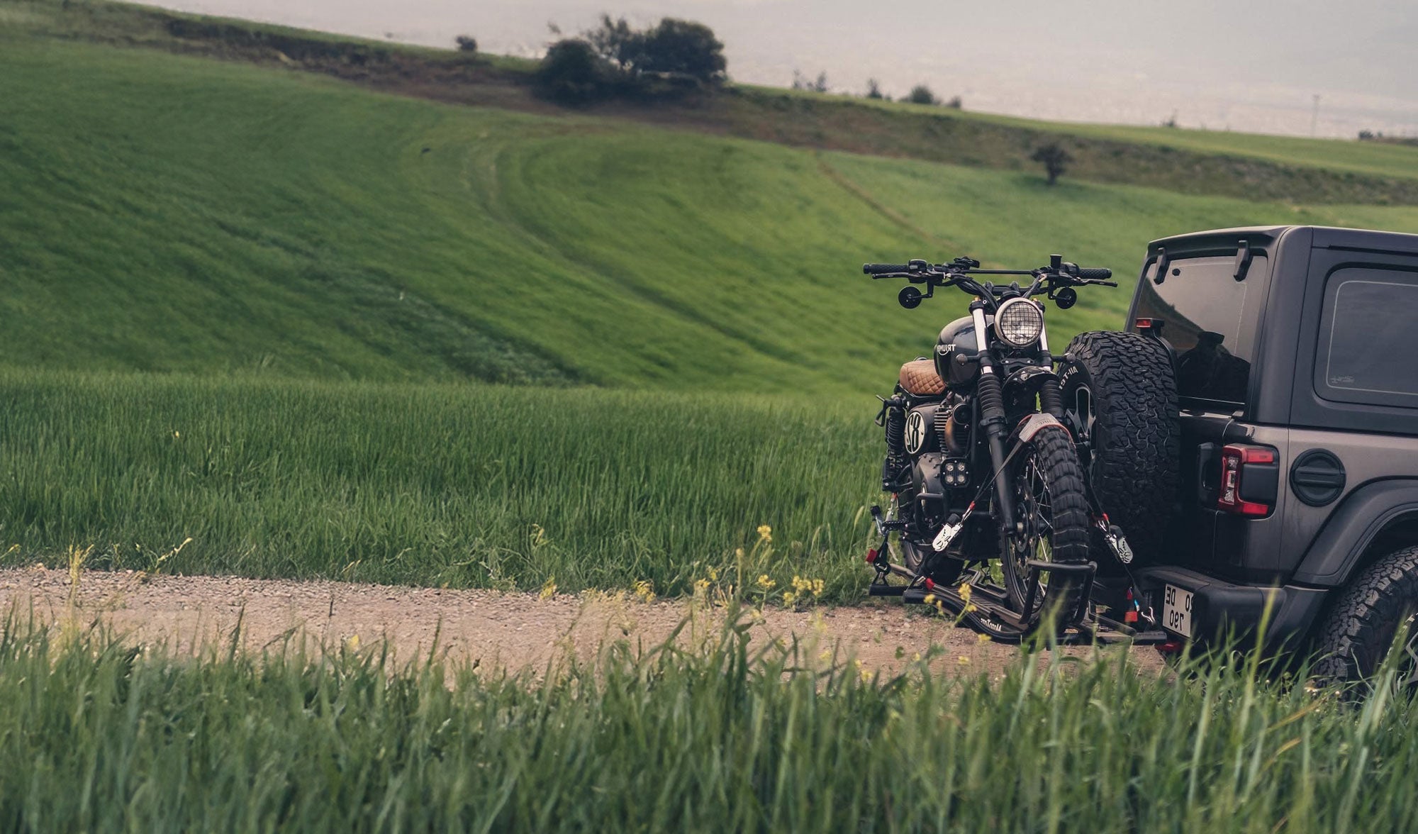 $1,399.00 USDWide-tire track and platform extension kit upgrades a single motorcycle carrier into a 600 lb. rated dual motorcycle hitch carrier.