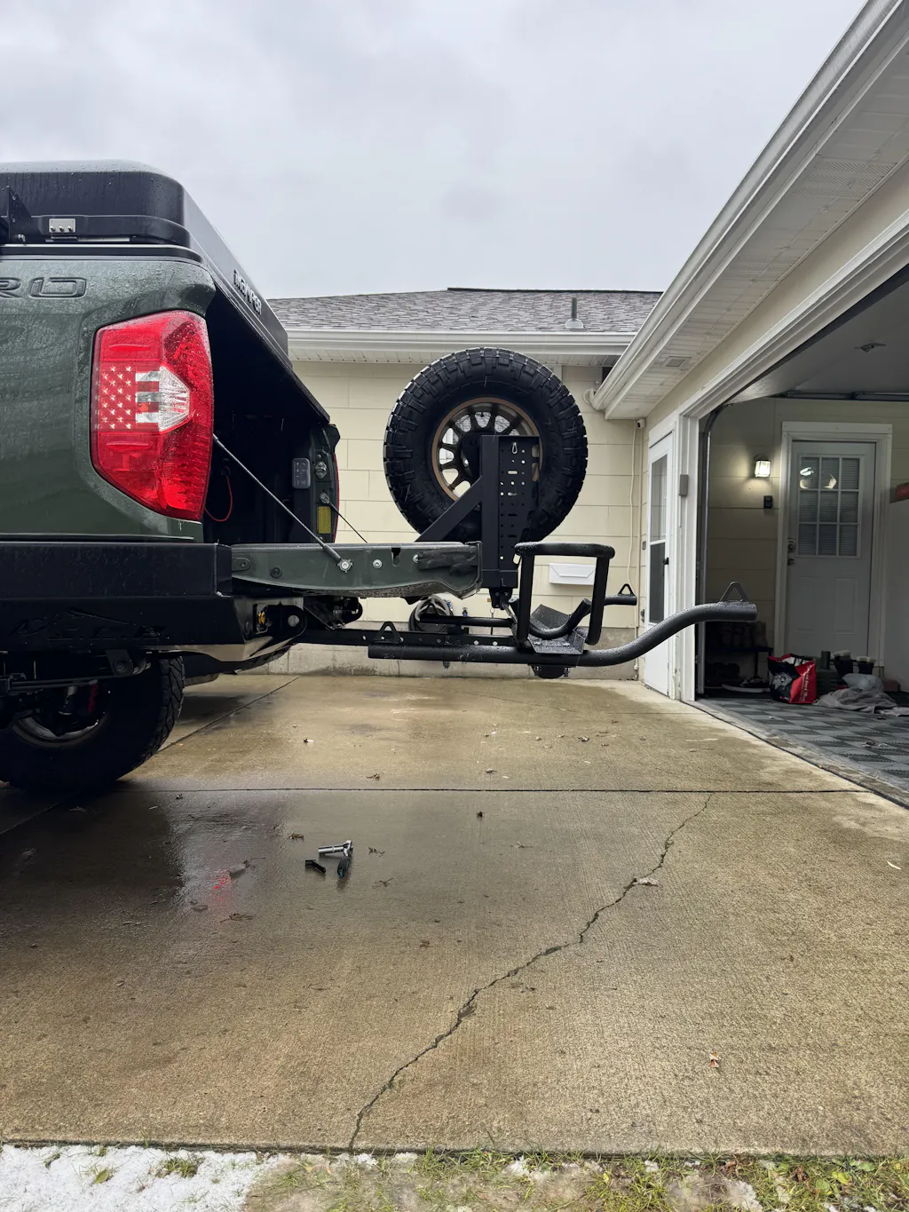 Heavy-duty steel main support connects to 2" receivers, hauls up to 600 lbs. (272 kgs.), supports chock, track, orientation, and distance from vehicle adjustability, alongside the attachment of innovative components.