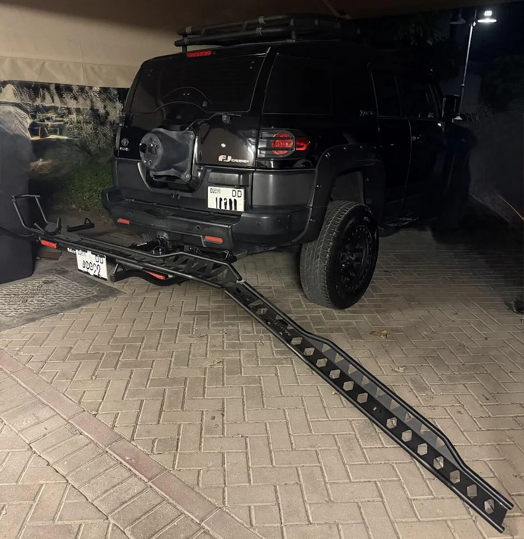 A long laser-cut ramp increases tire's traction, eases the loading angle and unhooks from the same side the ramp connects for a quicker loading process.