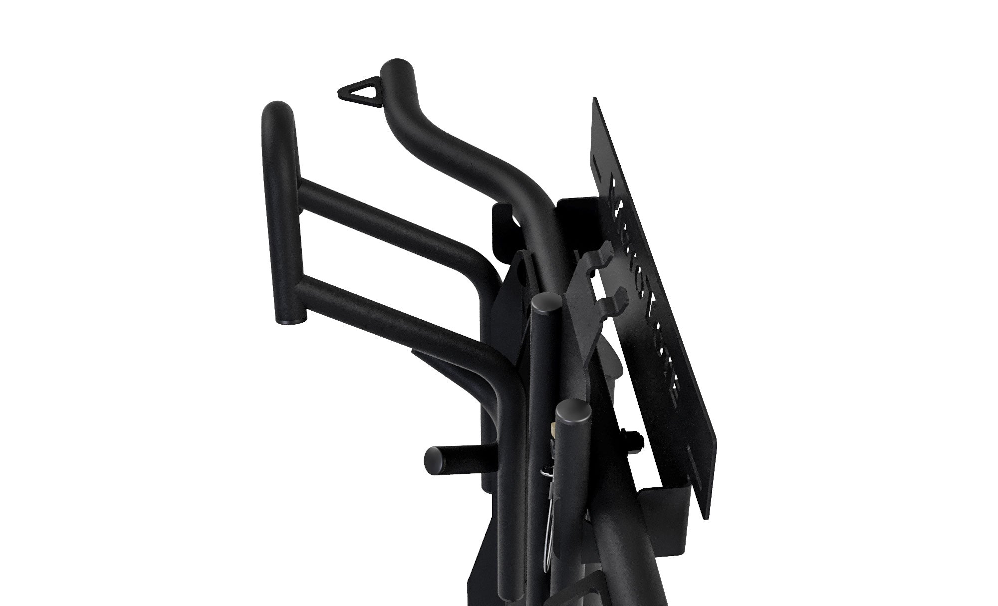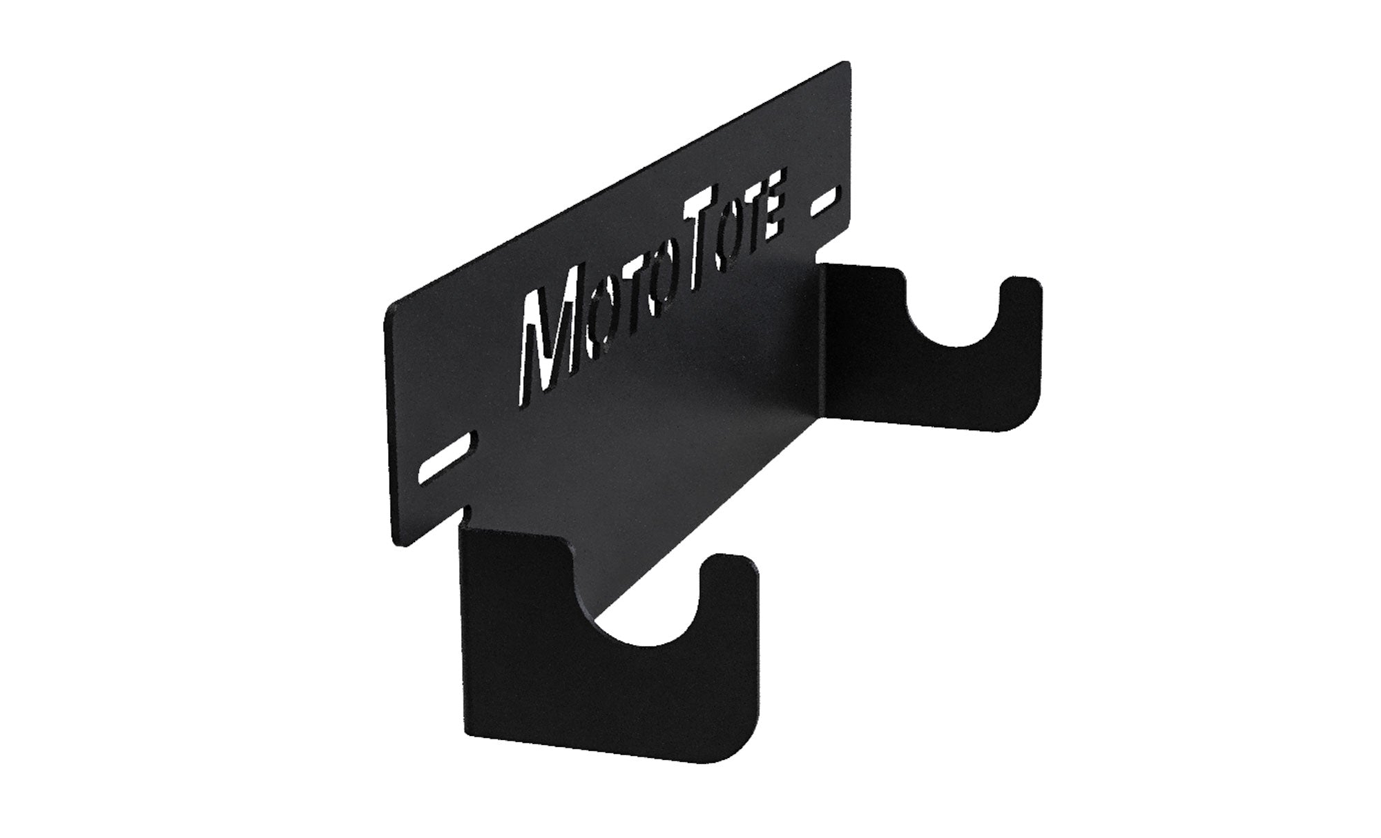 Angled steel hooks mirror the exact geometry of the MotoTote® tie-down arm, locking the carrier into place with a balanced, stable hang that keeps it safely suspended off the ground.
